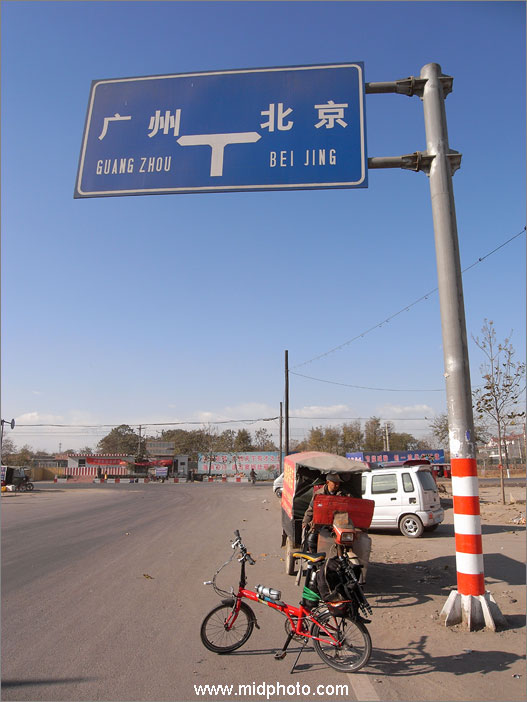 小镇出口的路标很有雄心,广州或者北京。我要去广州,离这至少还有2200公里。图片编号R0015297