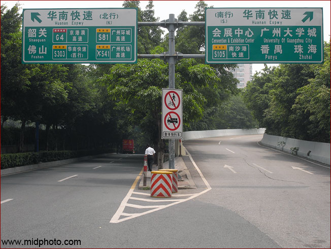 前面出现路牌,直行或右转都去广州。R0045598