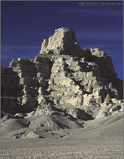 古格遗址全景,最上面那一点白就是顶层王宫,大约四室两厅。点击放大。 | |||||