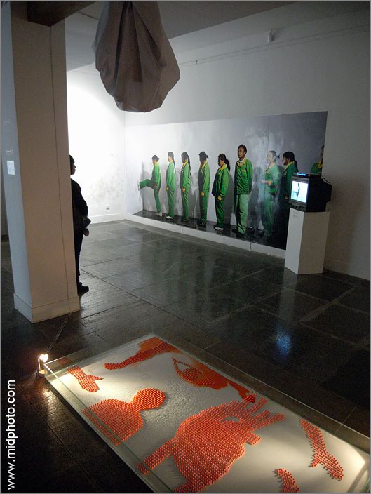 cafe的当代艺术联展,反正不要门票钱,凑个热闹吧。要去的话赶紧,因为门口的展品有几只插着孔雀毛的死鸡,可能会腐败得很快。