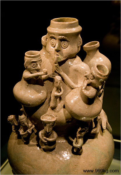 青釉堆塑楼厥人物罐。西晋(公元265-317)
