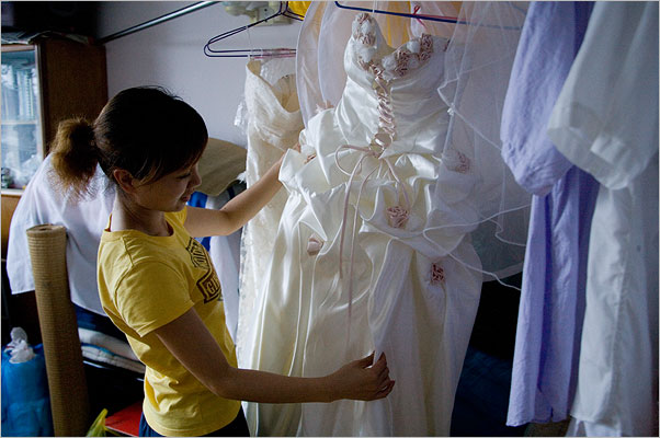 丽蓉在检查新买的婚纱,2006年7月23日。图片号:Shanghai723G