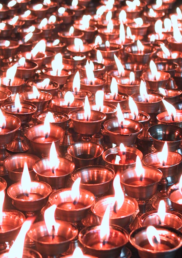 下页图:大昭寺的酥油灯。佳能G1数码相机,1/60秒,F2.5。SuperFine